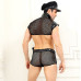 мікро-куртка поліцейського на блискавці, із позначкою поліцейського і сексуальними сітчастими вставками;