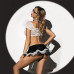 З еротичним костюмом студентки JSY Яскрава Івонн ви легко реалізуєте сміливу та палку фантазію багатьох чоловіків про слухняну розкуту ученицю. Пишна чорно-біла спідничка з контрастними вставками відкриває доступ до найпікантніших частин тіла, підкреслюючи хвилювальні вигини стегон. Продуманий до дрібних деталей дизайн топа з білого гіпюру, зі спокусливою шнурівкою, створює гарне декольте й дає змогу оголювати бюст рівно настільки, наскільки ви самі захочете. Декор у вигляді грайливої краватки з ніжним бантиком, класична чорна оправа та спеціальні стрічки для волосся просто змусять уяву вашого партнера вибухнути кілотоннами збудження. Доповніть образ панчохами або білими гольфами, туфлями на високих підборах, щоб створити відповідне вбрання для романтичної вечері з продовженням. Еротичний костюм зроблений із якісних і приємних до тіла матеріалів, не стискує руху й сидітиме по фігурі ідеально.