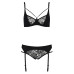 Описание Комплект белья Passion PAULINE SET L/XL, black, стрэпы, лиф, стринги и пояс для чулок