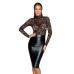 Хочете вразити своїм неймовірним образом колег, друзів або партнера? Рекомендуємо купити сукню з мереживним топом Noir Handmade F228 Midi dress with soft lace top. Вона досить вузька, але завдяки еластичності матеріалу шикарно сідає на всі вигини фігури. Спідниця довжиною до коліна виконана з матеріалу з мокрим ефектом. Топ сукні з довгим вузьким рукавом зшитий із сітчастого матеріалу з квітковою вишивкою. Мереживний комір-стійка застібається ззаду на гачки, утворюючи на спинці красивий краплеподібний виріз. Топ напівпрозорий, крізь нього можна добре розгледіти груди й пружні соски. Легкий ажурний верх створює зі спідницею еротичний ансамбль жіночності та елегантності.